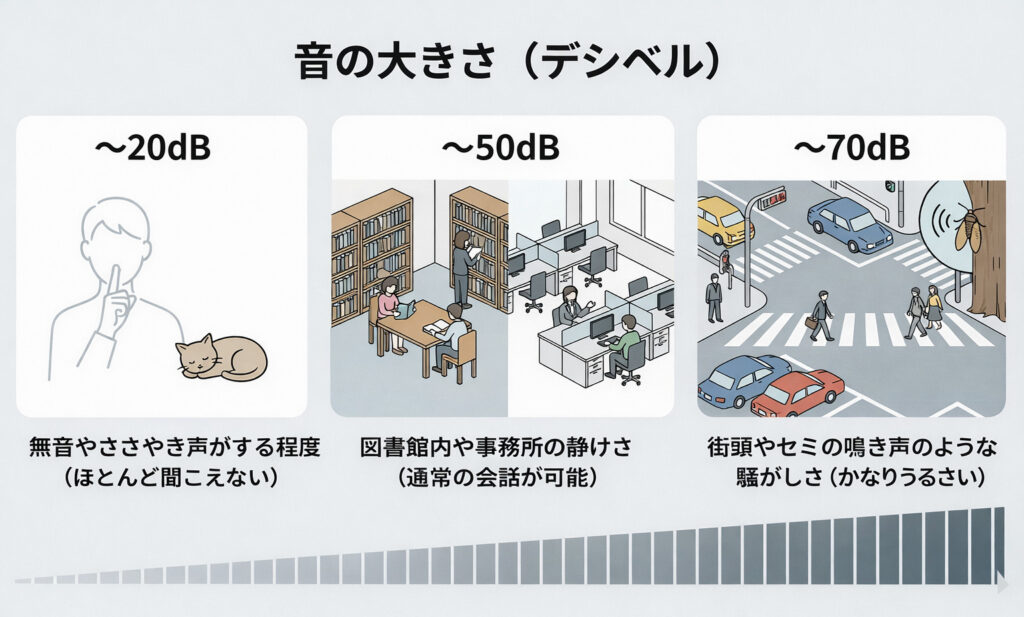 他の音の大きさはどの程度なのか目安として知っておきましょう。